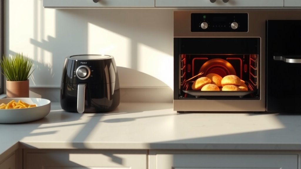 • While faster, air fryers have limited capacity compared to full-sized ovens.